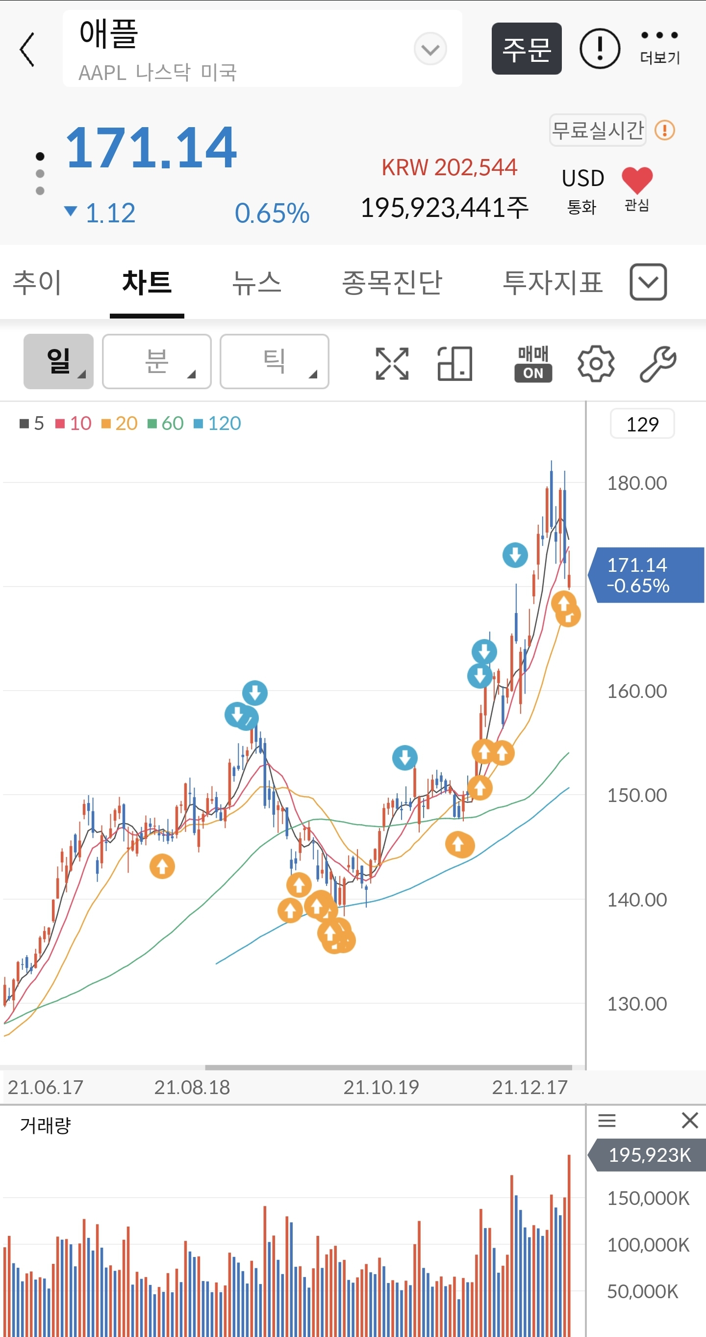 아까운 애플~ 120달러대 때부터 들고 있다가 130-140달러때에서 추매(불타기)하고 일부 팔고 하던 걸 전량 털어버리니 어찌나 허전하던지... 아무튼 죽이 되든 밥이 되든 애플은 들고 있어야겠다는 생각이 드네요.