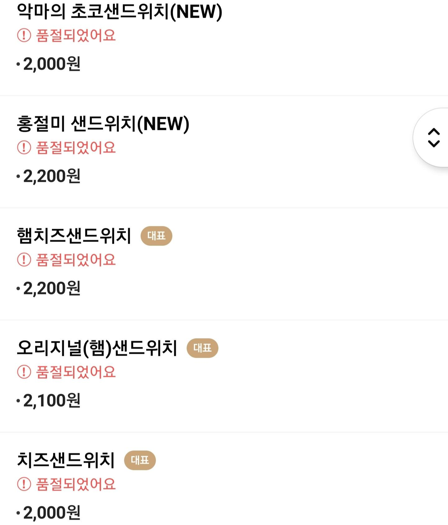다음은 품절로 계속 저의 속을 썩였던 악마의 초코 샌드위치입니다. (2천원)