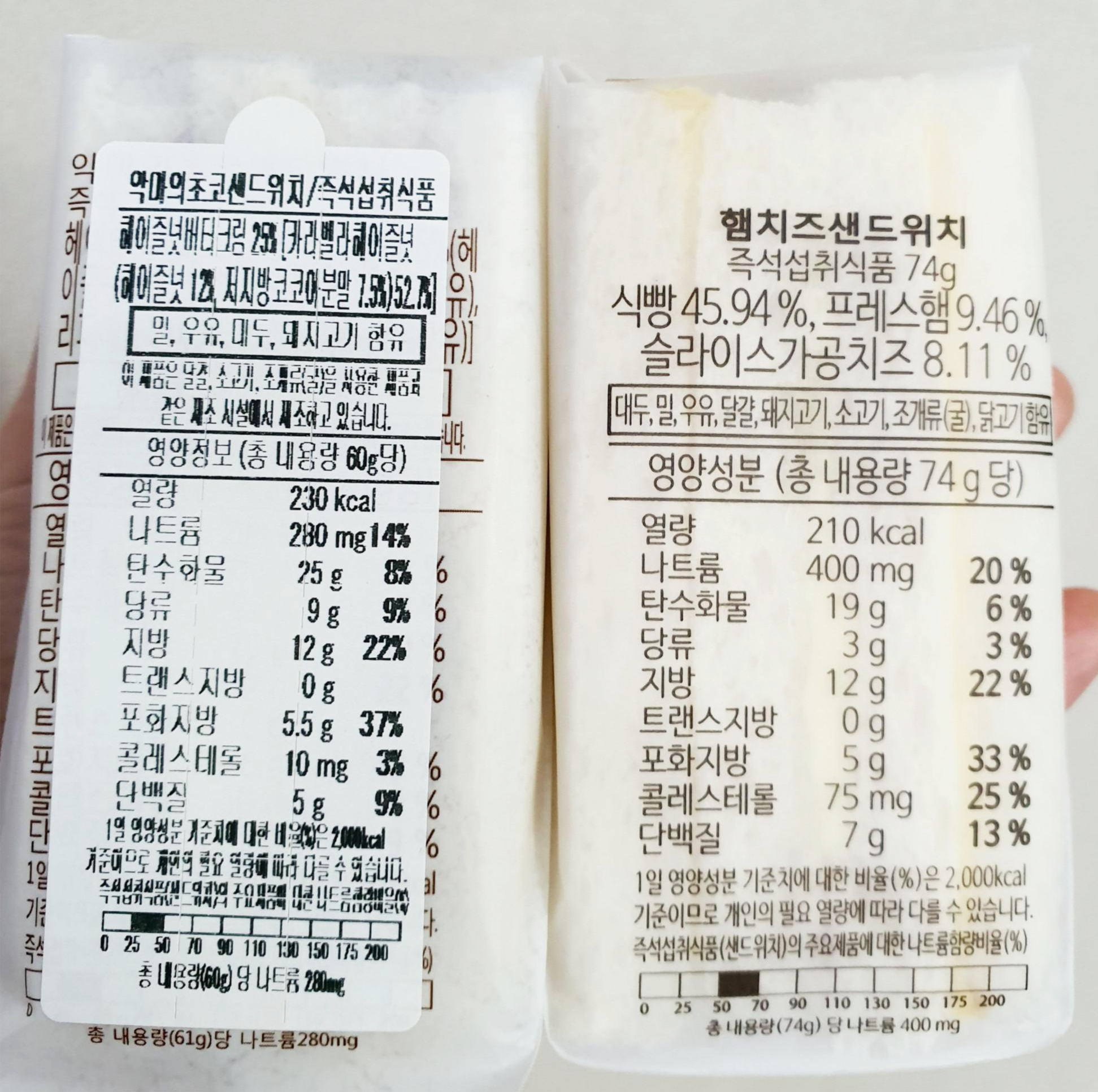 다음은 무난한 햄치즈 샌드위치와 계속해서 품절이어서 먹을 수가 없었던 악마의 초코 샌드위치입니다.
