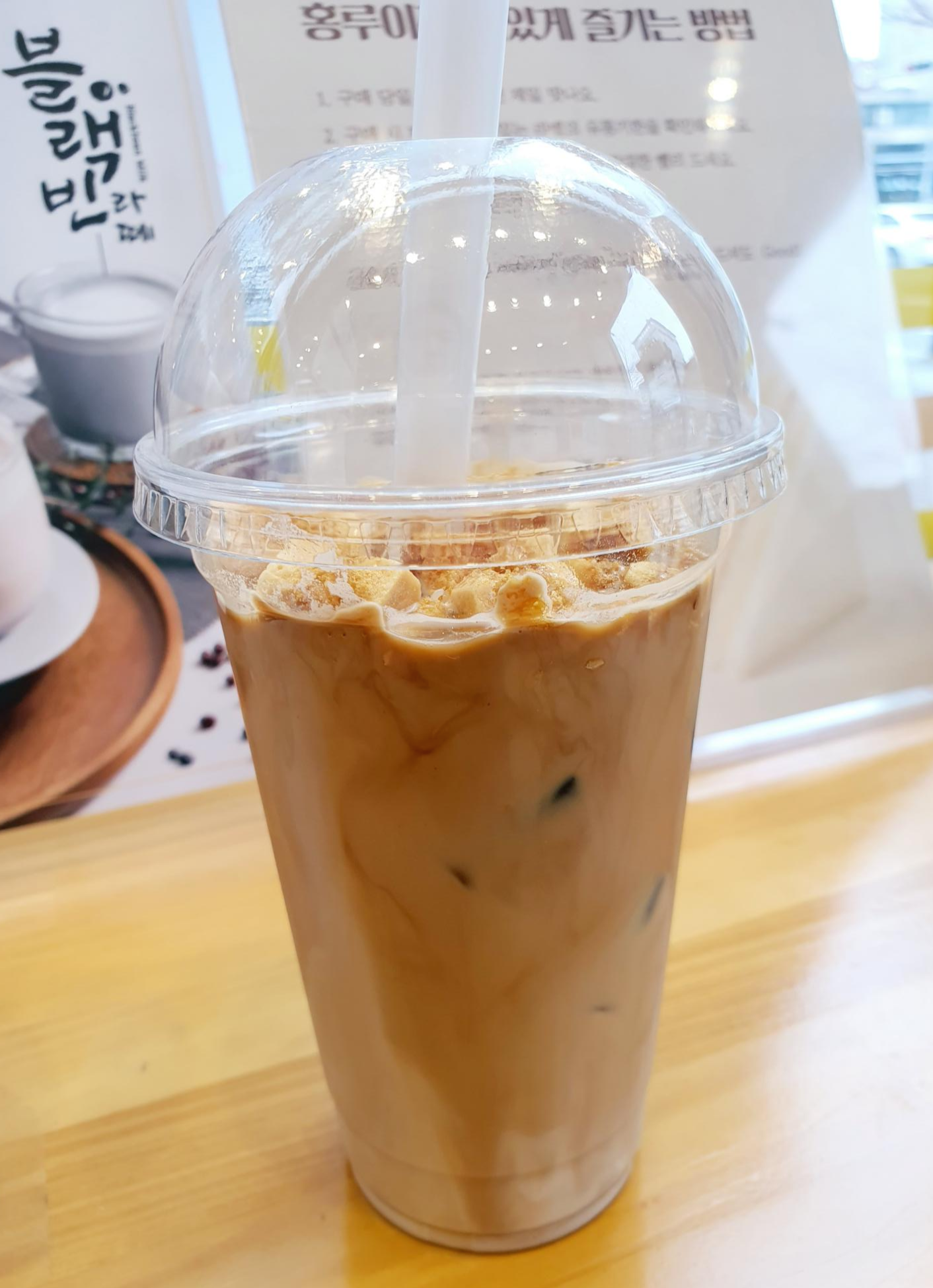 보통은 커피를 시키지만 메뉴에 보니까 블랙빈 라떼와 레드빈 라떼라는 것이 보여서 궁금해서 참을 수 없었습니다. 둘 중 하나만 마셔보면 파악이 될 것 같아서 블랙빈으로 골라봤어요.