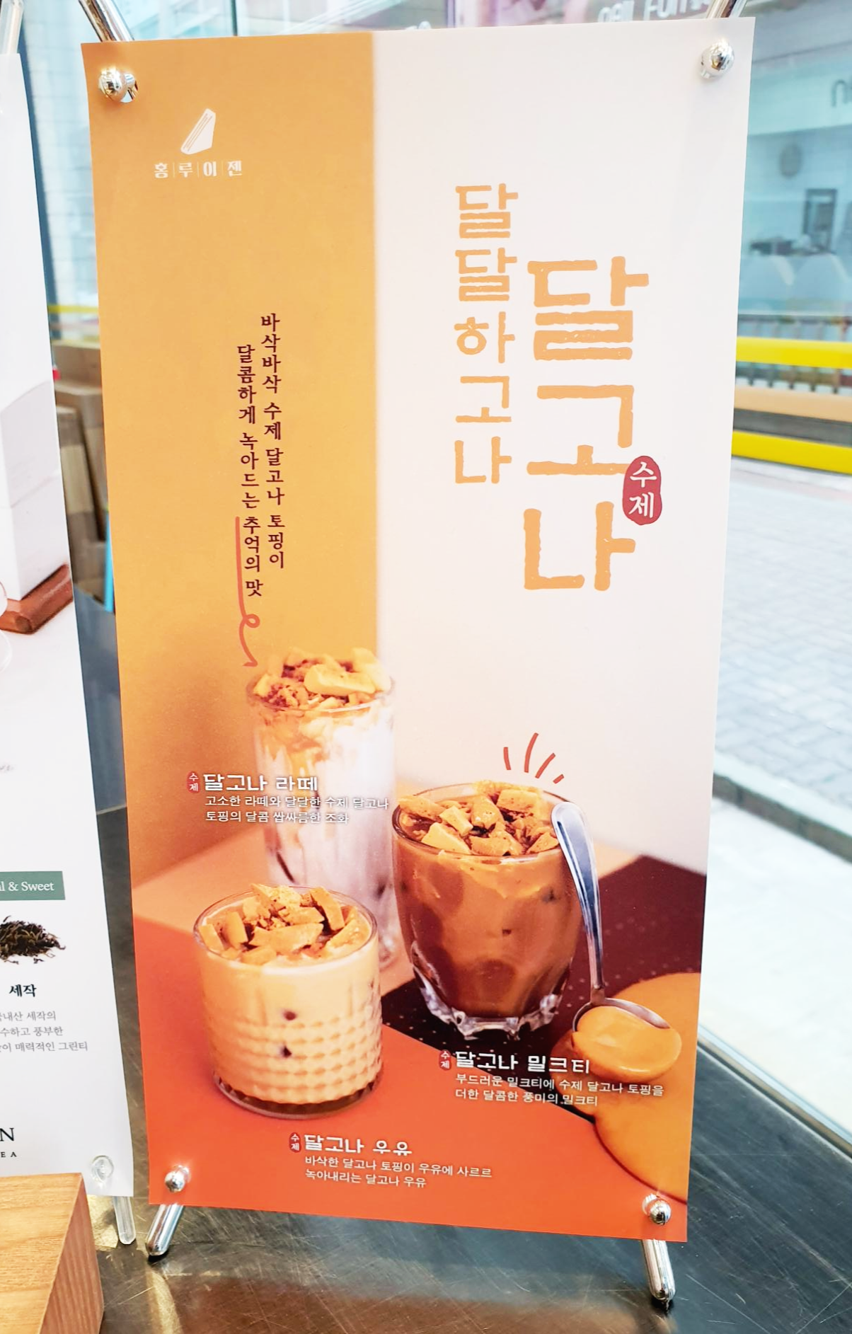 홍루이젠에서는 달고나 라떼, 달고나 밀크티, 달고나 우유, 이렇게 세 종류의 달고나 음료가 있습니다.
