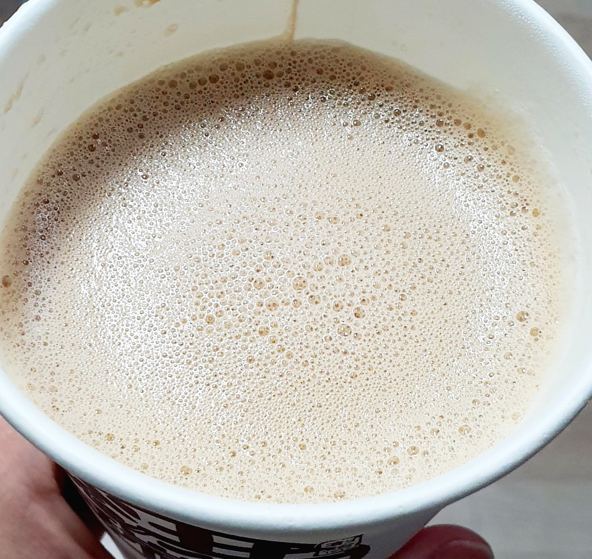 마셔보니 역시나 검은콩 두유와 비슷하면서 그보다는 좀 더 부드러운 맛이었어요. 전 HOT을 선택했기 때문에 뜨겁고 달달하고 고소했어요. 맛은 있어서 처음 한 모금이 힐링이 되긴 했는데 다음 순간엔 이 음료가 과연 3,500원의 가치가 있는지를 생각하게 되었습니다.