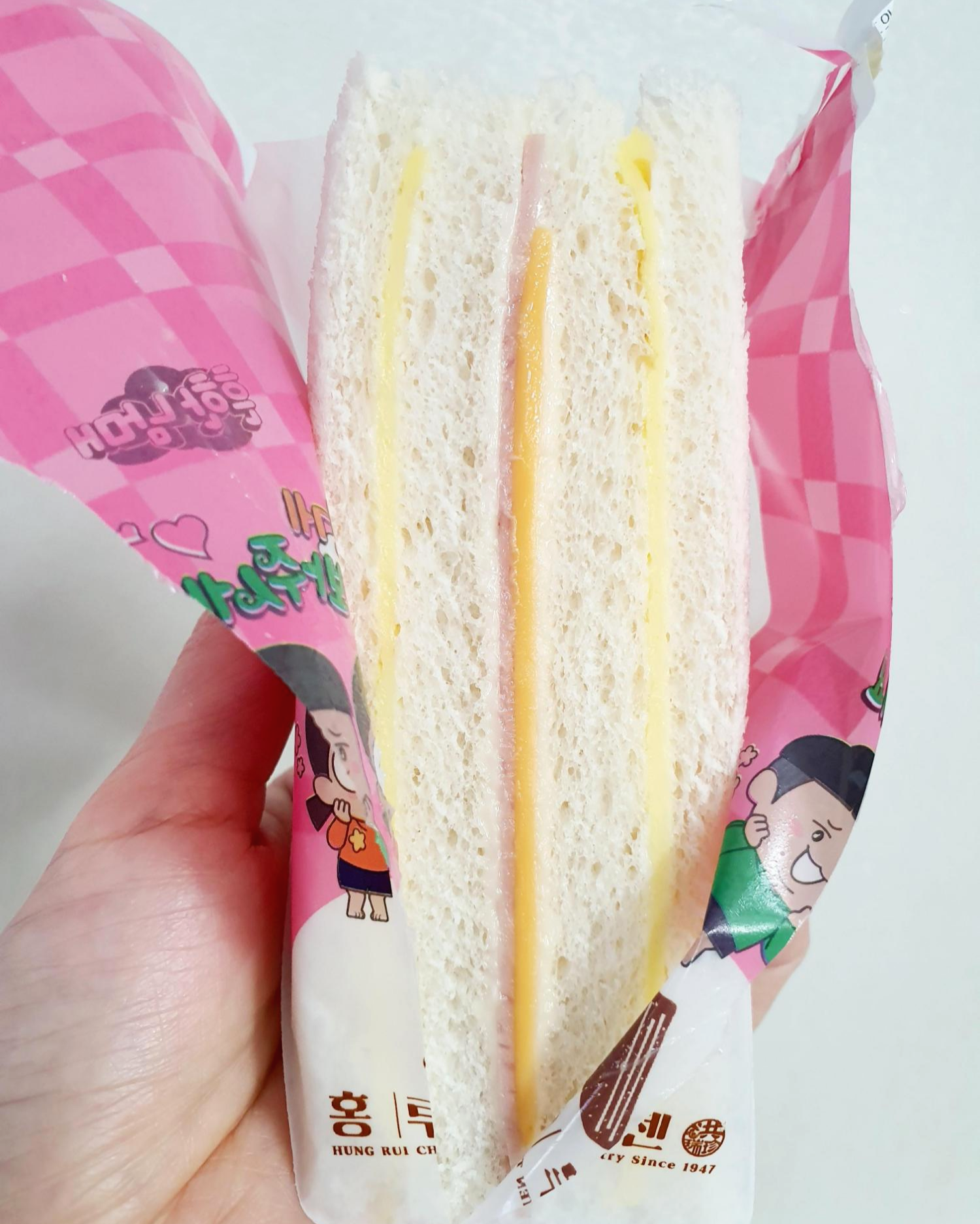 가장 대표적인 대만 샌드위치답게 흠잡을 게 없었어요. 그냥 랩탑 열어두고 일하면서 별 자극 없이 우물우물 먹을 수 있는 샌드위치예요. 저는 오리지널 햄샌드위치보다는 이게 훨씬 나았습니다. (참고로 개인적인 의견: 메이젠 햄치즈 > 홍루이젠 햄치즈)